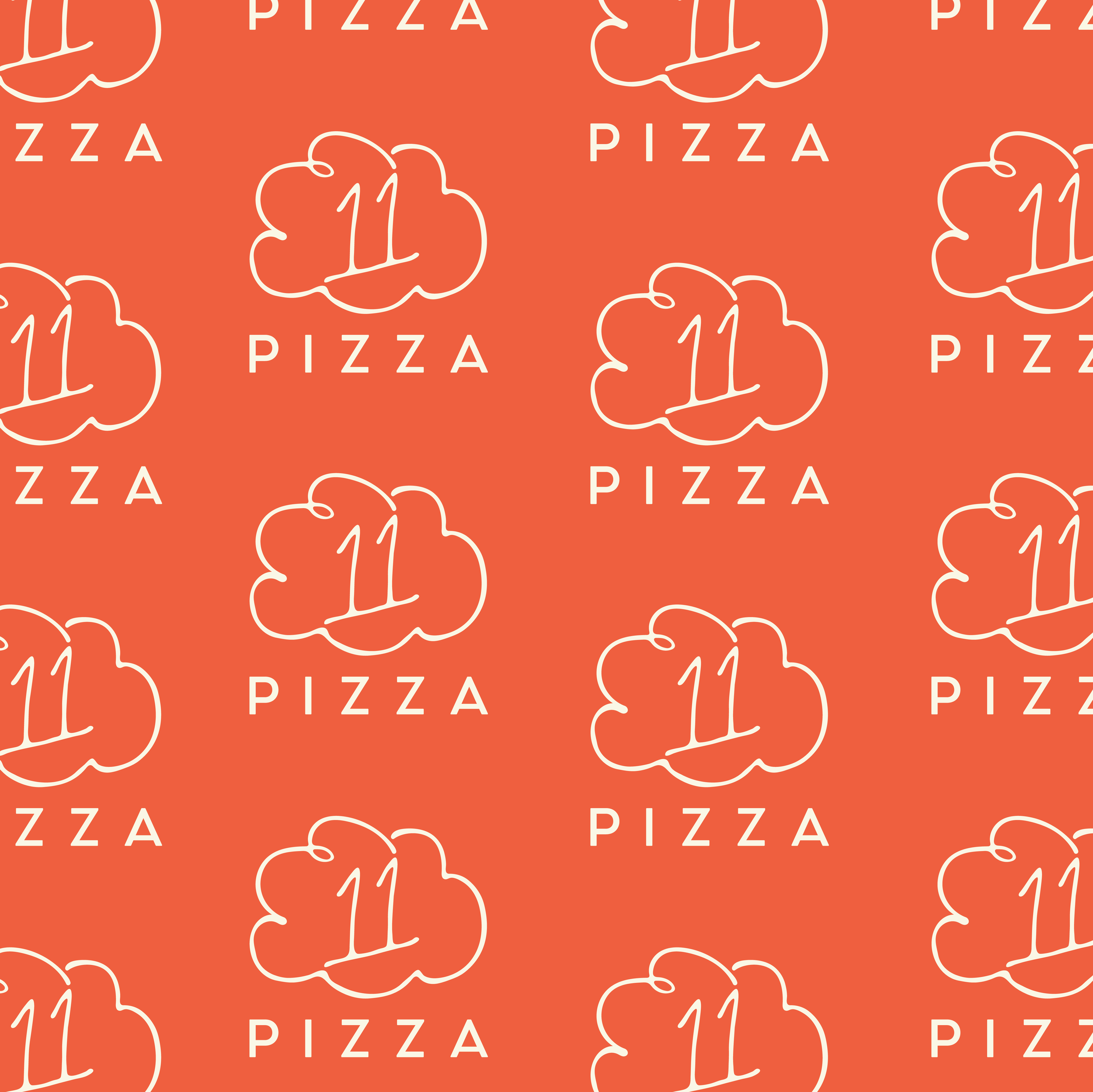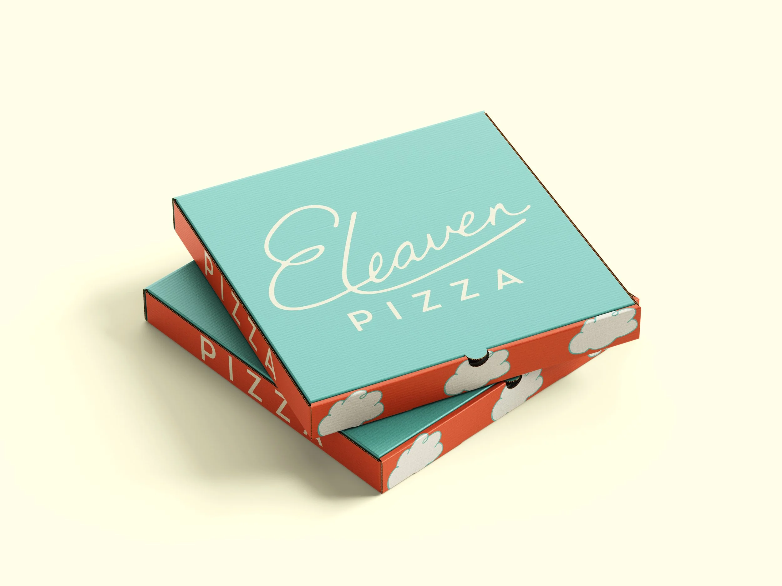 The name Eleaven is a play on words with leaven and the rise of dough. Known for their incredibly fluffy crust, our brand identity design conveys this through the cloud illustrations, as well as, the whimsical custom hand-drawn type. The same curves from the type logo mark are present in the submarks and illlustrations creating a cohesive, strong look and feel.
